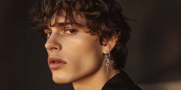 Setzen Sie ein Statement mit unseren Herren-Ohrclips. Mit ihrem schlichten und modernen Design bieten diese Hängeohrringe die perfekte Mischung aus Eleganz und Raffinesse. Ideal für alle, die ihrem Stil eine einzigartige Note verleihen möchten, ohne sich auf Piercings einlassen zu müssen. Unsere Kollektion umfasst eine Vielzahl von Ohrclips für jeden Geschmack. Von dezenten, baumelnden Ketten bis hin zu auffälligen, auffälligen Designs bieten unsere Ohrclips Komfort und Sicherheit und unterstreichen gleichzeitig Ihren Look. Perfekt für den modernen Mann, der sich gerne abhebt.