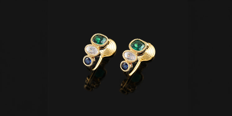 Boucles d'oreilles clips émeraude zircon triple couleur