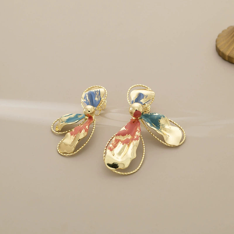 Turn heads with the bold elegance of our Asymmetric Color-Brush Petal Clip-On Earrings. Made of alloy and hand-painted enamel, each earring features petal-like curves in an expressive blend of red, blue, and gold tones. The design is purposefully asymmetric — one side longer than the other — for an artful, eye-catching effect. Measuring 77mm in length and weighing 6g per pair, these clip earrings are ideal for fashion-forward women who want statement earrings without the need for piercings.