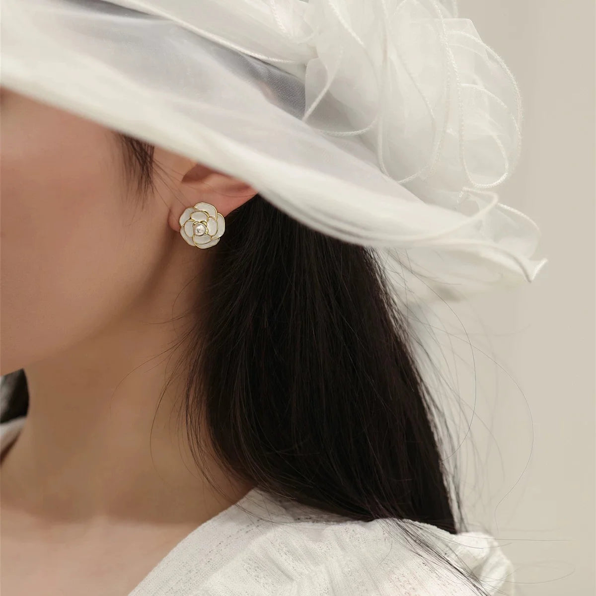 Experience timeless elegance with our Camellia Enamel Clip On Earrings in White. These beautiful earrings are crafted from high-quality gold-plated copper alloy, ensuring both durability and a luxurious appearance. The crisp white enamel finish is meticulously applied, creating a stunning contrast with the pearl centerpiece, making these earrings an ideal choice for any occasion. The screw-back clip-on design ensures a secure and comfortable fit, making them perfect for women who prefer non-pierced options.