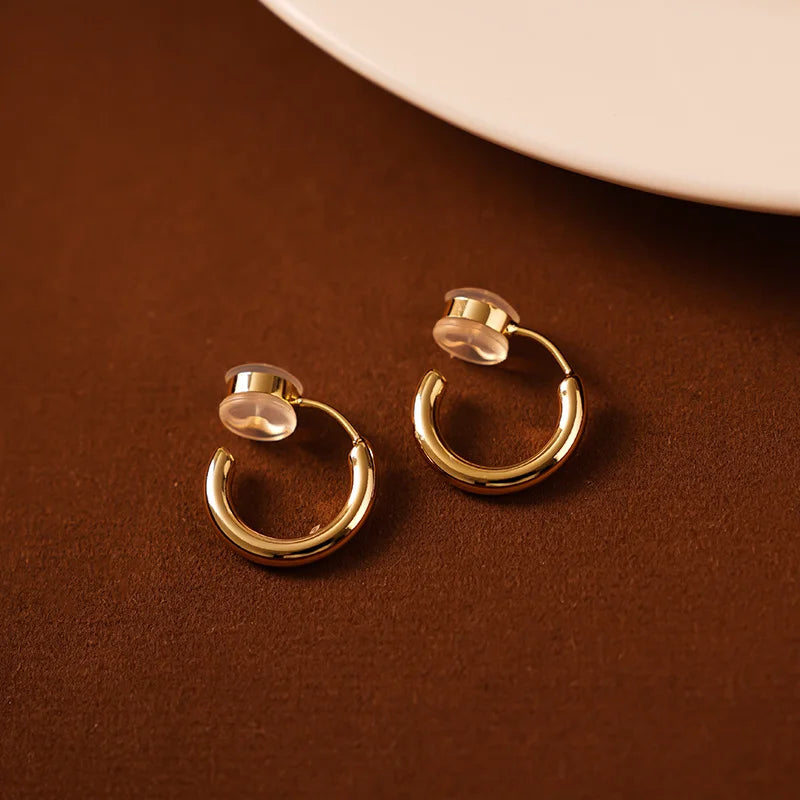 Experience timeless elegance with the Huggie Hoop Clip-On Earrings in Gold, crafted from 18k gold-plated copper. These C-type clip-on earrings feature a sleek and classic hoop design, perfect for adding a touch of sophistication to any outfit. With a diameter of 15mm, they provide a comfortable fit while ensuring a secure hold without the need for piercings. These gold hoop clip-on earrings are an ideal choice for women seeking a versatile and stylish accessory.