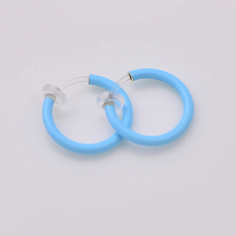 Add a serene glow to your outfit with the Mini Glow Clip-On Hoop Earrings in Pastel Blue. These 13mm lightweight hoops are perfect for casual and night-time wear, glowing softly in the dark to create a captivating effect. Designed with comfort in mind, they feature a transparent clip-on closure for non-pierced ears.