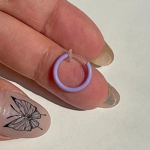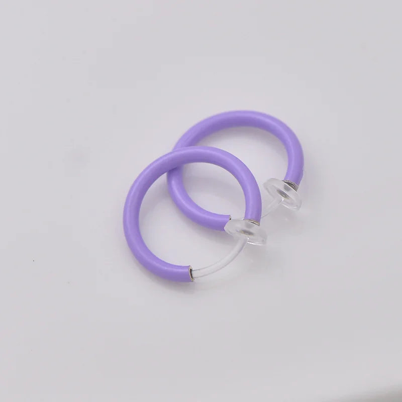 Express your playful side with the Mini Glow Clip-On Hoop Earrings in Lavender Purple. These unique hoops glow beautifully in the dark, perfect for night outings or themed events. Lightweight and comfortable, they feature a secure transparent clip-on spring mechanism for non-pierced ears.