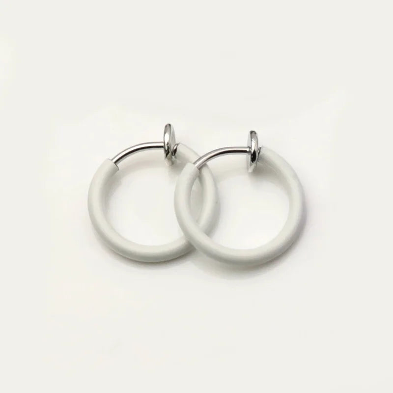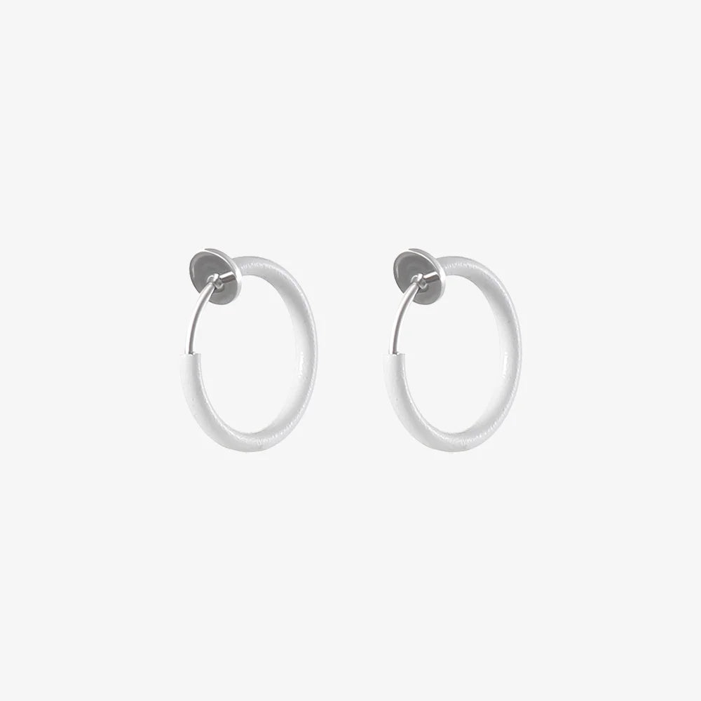 Add a touch of understated elegance to your style with the Mini Hoop Clip On Earrings in White. These chic and versatile earrings are crafted from white electroplated copper, offering a clean and polished finish that enhances any outfit. Available in 11mm, 13mm, and 15mm sizes, these huggie earrings clip on effortlessly, providing a secure and comfortable fit without the need for pierced ears. The sliding spring hoop mechanism ensures a snug fit, making these earrings perfect for both men and women.
